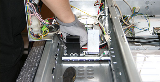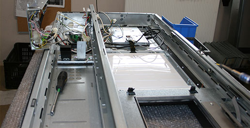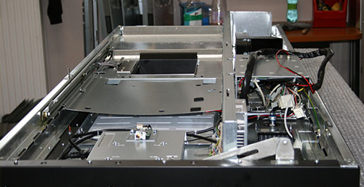 A váz alapos megtisztítását követően a szétszerelés következik. Az átkábelezéssel előkészítjük az érintőkijelző fogadására. A kijelző beszerelése után a világítást LED technológiára cseréljük. A külső szerkezeti elemek felszerelésével új, modern külsőt kölcsönzünk az ajtóknak.