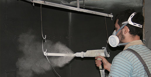 Egy színezett műanyag-por alapú festéket hordunk fel az adott felületre elektrosztatikus szórópisztoly segítségével kb. 80 kV feszültséggel. A fém felületén megtapad a műanyag porfesték, majd kemencében kb. 180 C fokon ráolvasztjuk.